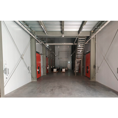 Обшивка камер выполняется из теплоизолирующих ПИР-панелей, наружная обшивка стен и кровли — из окрашенного профлиста.