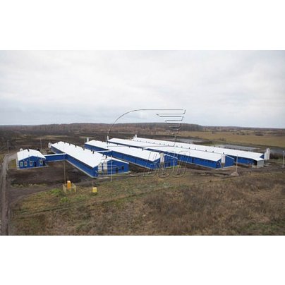 Полный комплекс зданий для свиноферм: корпуса осеменения, ожидания, доращивания и опороса, откормочники, ветлаборатории, санпропускники, бытовые помещения.
